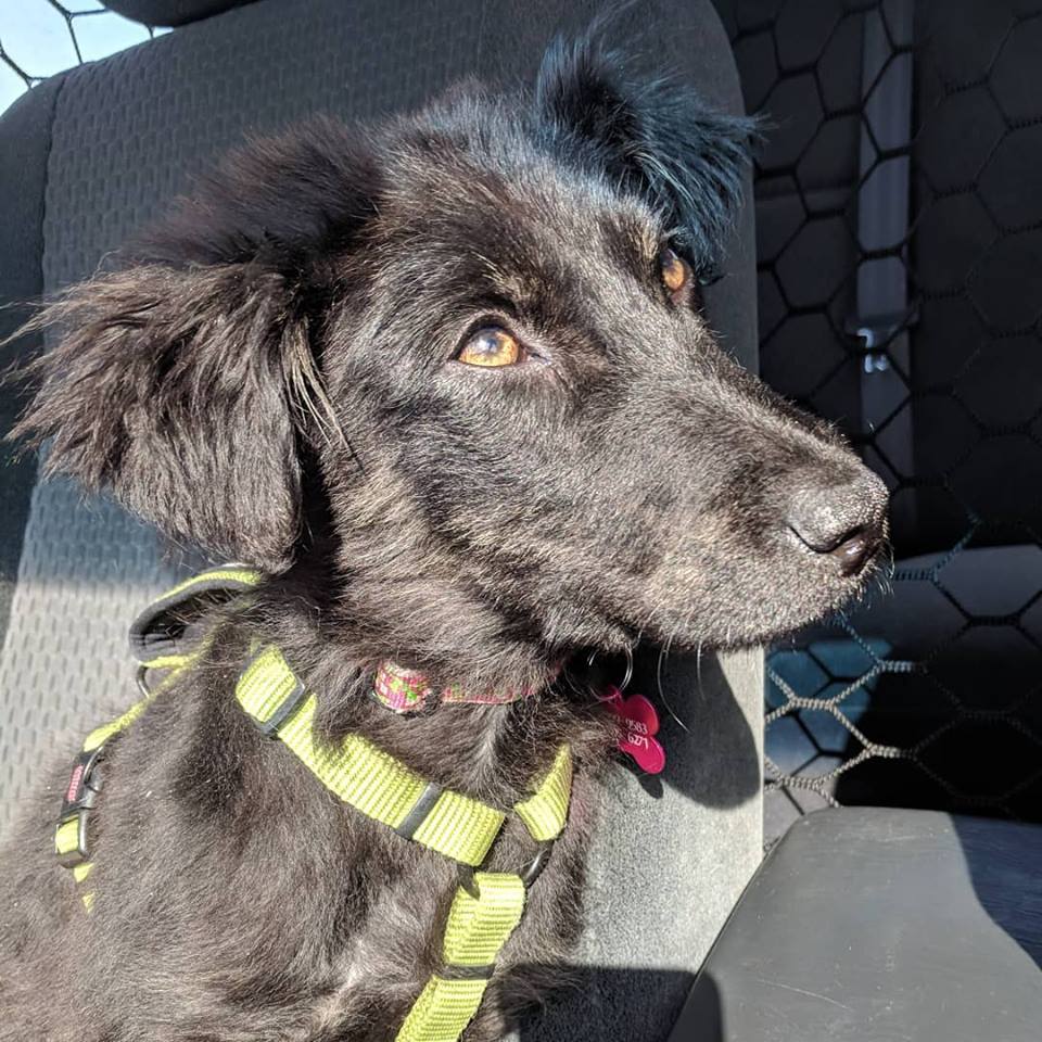Birdie came to us from the Humboldt County Animal Shelter where she was extremely fearful and failing to come out of her shell at all. When we started spending time with her, it became obvious that she likely had no interaction with humans prior to coming to the shelter. She was living as a stray in Maple Creek, as was actually trapped by accident! No one even knew there was a dog out there. Birdie is making improvements much quicker than expected and is a very smart little pup! She still has a ways to go until she can go up for adoption, but right now she is enjoying being showered with love and learning how to be a family member.